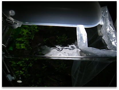 時間も遅く消灯時間になってしまったのでコンパクトライトのみ点灯で水合わせして投入しました。