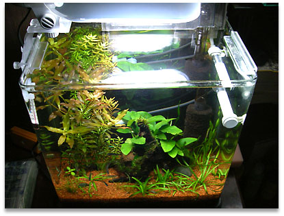 今まで30cm水槽に使っていたニッソーカラーライト450をキューブガーデンに使うのでこっちの水槽にコンパクトライトルミノ24Wをセット。