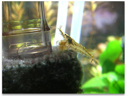 ついでにエビ水槽にも少し茶ゴケを入れてみたらみんな集まってムシャムシャ食べてました。