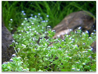 植え替え後二時間ほど経過した頃からキューバパールがもの凄い勢いで気泡を出しはじめた。