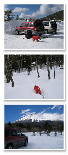 いつも行っている山とは雪質が違ってパウダースノーで犬も大喜びでした。