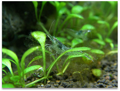 ミナミヌマエビが10匹以上いるけど、とても小さくコケ駆除部隊としてちょっと心もとないので三匹投入しました。