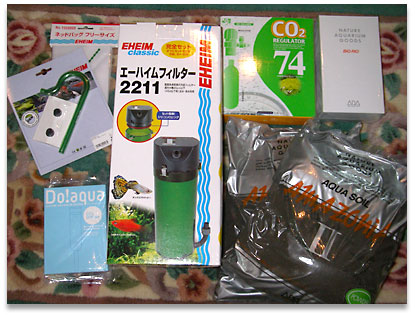 フィルターをセットして水を入れて、ショップへ水草を買いに。