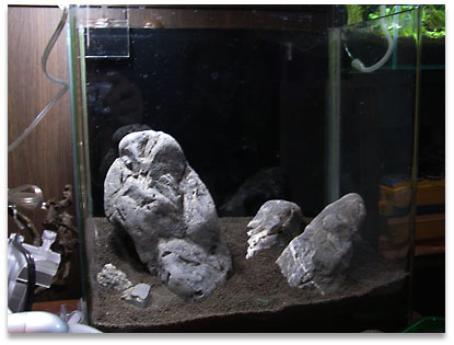 そんで水槽にアマゾニア2を一袋分(3L)入れて午前中拾ってきて洗っておいた石を入れてレイアウトを組む。